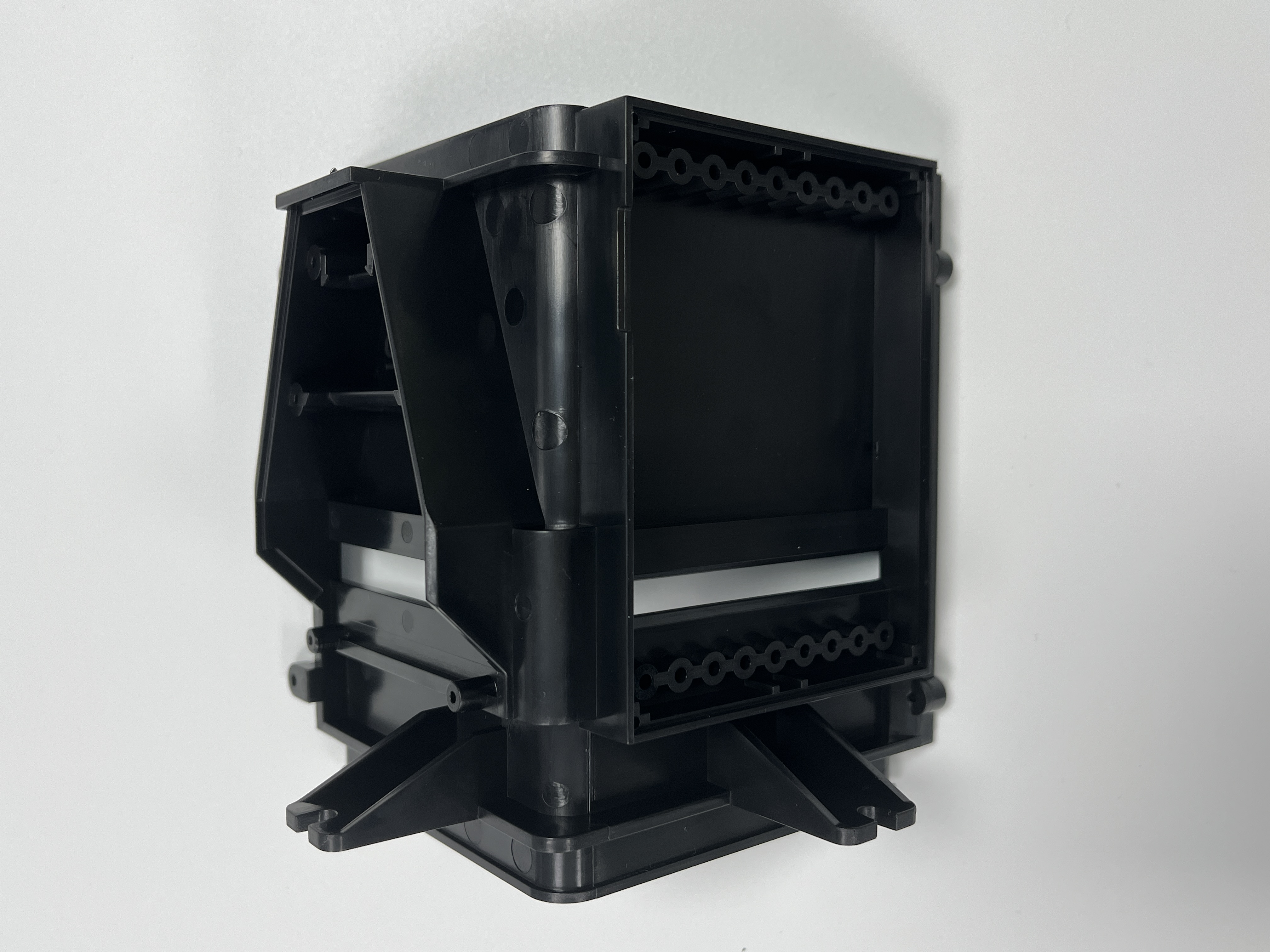 Undercut Solution: Hydraulic sliders for the bracket’s snap-fit tabs (repeat positioning error ≤0.002mm).